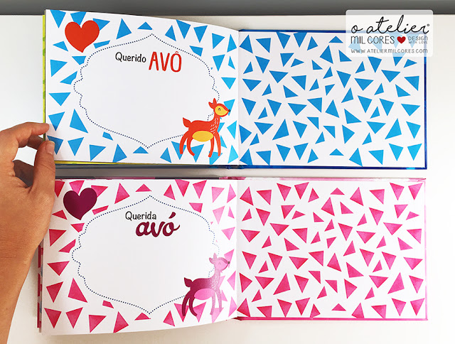 Todos os livrinhos têm espaços para colar fotografias, fazer desenhos e escrever mensagens fofinhas.